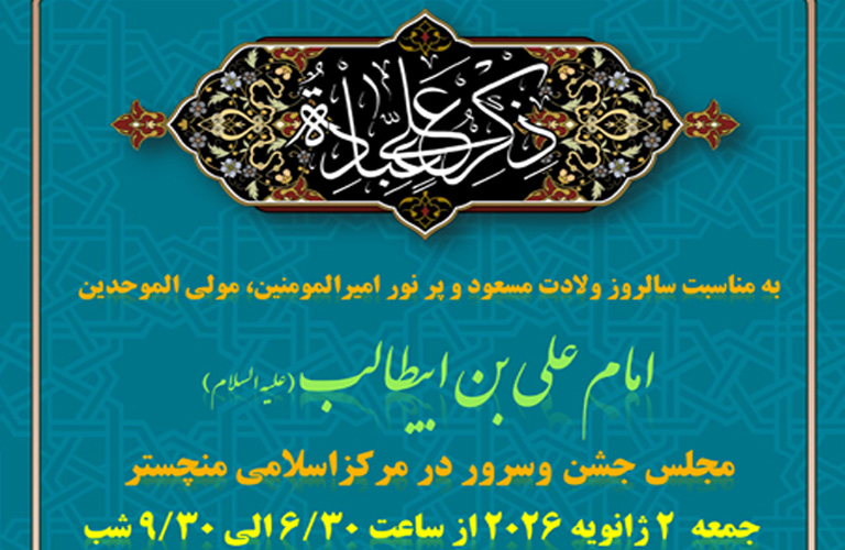 به مناسبت سالروز ولادت با سعادت و پرنور امیرالمؤمنین، مولیالموحدین حضرت امام علی بن ابیطالب(ع)، مراسم باشکوهی از سوی مرکز اسلامی منچستر برگزار میشود.