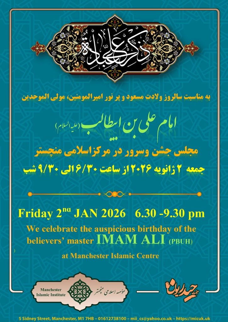 این آیین جشن و سرور، روز جمعه دوم ژانویه ۲۰۲۶ از ساعت ۶:۳۰ تا ۹:۳۰ شب در محل مرکز اسلامی منچستر برگزار خواهد شد.