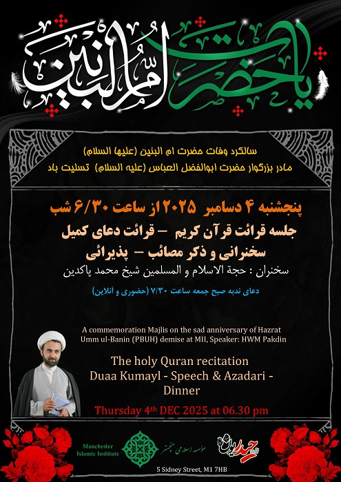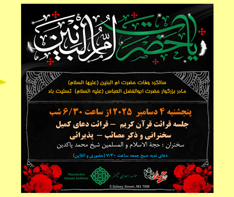 خانه > اطلاعیه ها > برگزاری مراسم سوگواری سالکرد وفات حضرت ام البنین (علیها السلام)