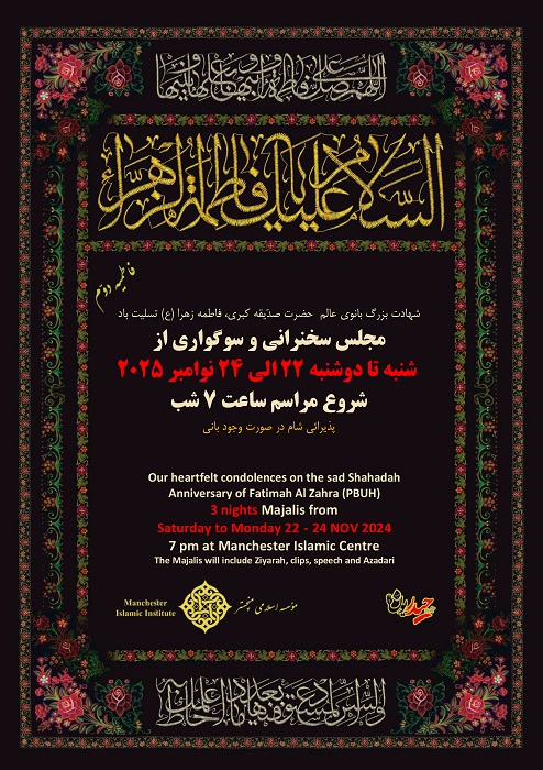 خانه > اطلاعیه ها > برگزاری مراسم سوگواری شهادت حضرت زهرا(س) _ فاطمیه دوم