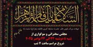 مادر بزرگوار حضرت ابوالفضل العباس (علیه السلام) تسلیت باد پنجشنبه 4 دسامبر 2025 از ساعت 30/6 شب جلسه قرائت قرآن کریم – قرائت دعای کمیل سخنرانی و ذکر مصائب –